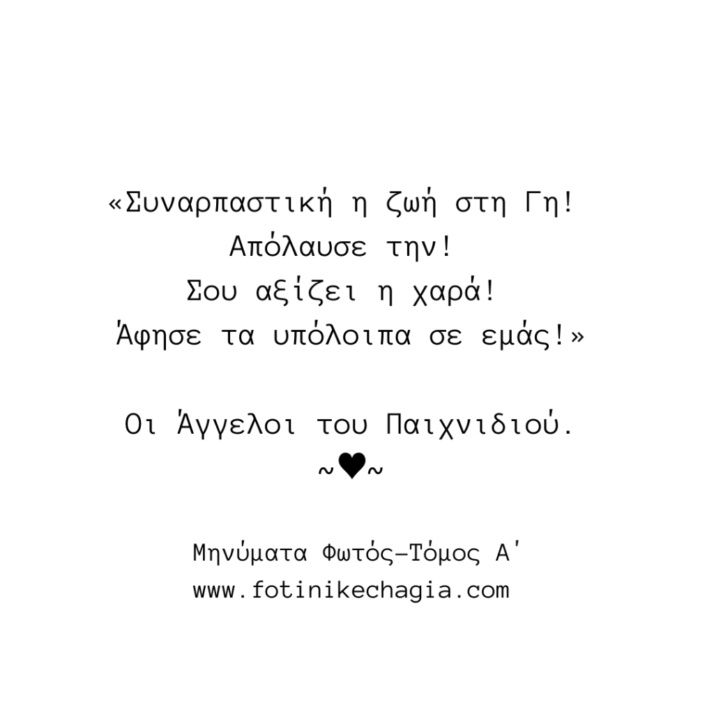 Οι Άγγελοι του Παιχνιδιού! Δημοσιεύθηκε την 9 Μαΐου 2021 από Fotini Kechagia ΒΙΒΛΙΑ motivateyourself #messagesoflight #smilealways #fotinikechagia Ανακάλυψε περισσότερα από Manifesting Miracles Εγγραφείτε για να λαμβάνετε τις τελευταίες αναρτήσεις στο email σας. Πληκτρολόγησε το email σου… Εγγραφή Κοινοποιήστε: Κάνε κλικ για να μοιραστείς στο X(Ανοίγει σε νέο παράθυρο) Χ Πατήστε για κοινοποίηση στο Facebook(Ανοίγει σε νέο παράθυρο) Facebook Κλικ για κοινοποίηση στο Pinterest(Ανοίγει σε νέο παράθυρο) Pinterest Κλικ για αποστολή ενός συνδέσμου μέσω email σε έναν/μία φίλο/η(Ανοίγει σε νέο παράθυρο) Email Κλικ για κοινοποίηση στο LinkedIn(Ανοίγει σε νέο παράθυρο) LinkedIn Κλικ για κοινοποίηση στο Tumblr(Ανοίγει σε νέο παράθυρο) Tumblr Μου αρέσει! Φόρτωση... Σχετικά Δημοσιεύθηκε από Fotini Kechagia Teacher, Actress, Digital Artist, Kundalini yoga teacher, healer, writer, Content Creator. Δείτε όλα τα άρθρα του/της Fotini Kechagia