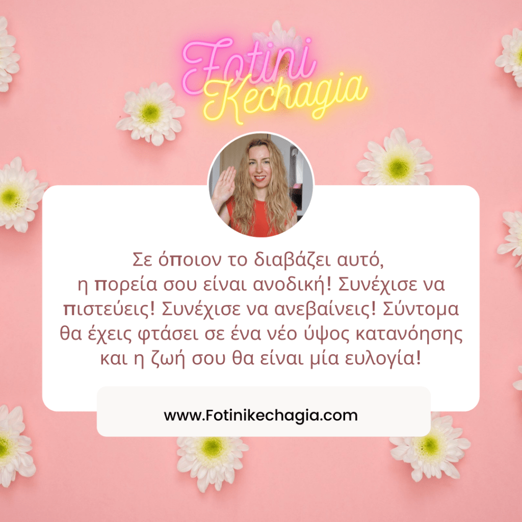 Σε όποιον το διαβάζει αυτό, η πορεία σου είναι ανοδική! Συνέχισε να πιστεύεις! Συνέχισε να ανεβαίνεις! Σύντομα θα έχεις φτάσει σε ένα νέο ύψος κατανόησης και η ζωή σου θα είναι μία ευλογία! 🙏