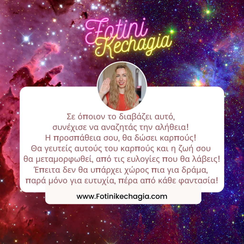 Σε όποιον το διαβάζει αυτό, συνέχισε να αναζητάς την αλήθεια! Η προσπάθεια σου, θα δώσει καρπούς! Θα γευτείς αυτούς του καρπούς και η ζωή σου θα μεταμορφωθεί, από τις ευλογίες που θα λάβεις! Έπειτα δεν θα υπάρχει χώρος πια για δράμα, παρά μόνο για ευτυχία, πέρα από κάθε φαντασία! 🙏