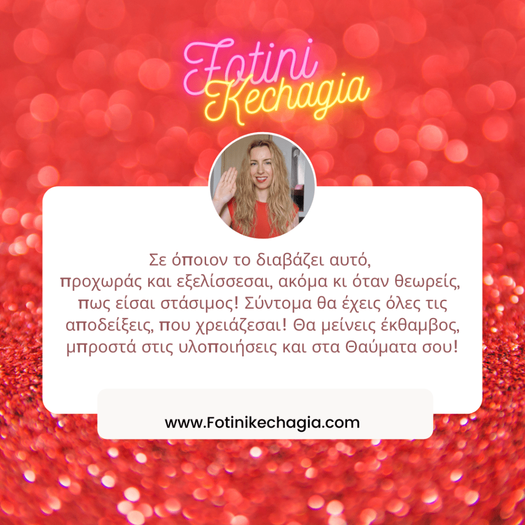 Σε όποιον το διαβάζει αυτό, προχωράς και εξελίσσεσαι, ακόμα κι όταν θεωρείς, πως είσαι στάσιμος! Σύντομα θα έχεις όλες τις αποδείξεις, που χρειάζεσαι! Θα μείνεις έκθαμβος, μπροστά στις υλοποιήσεις και στα Θαύματα σου! 🙏