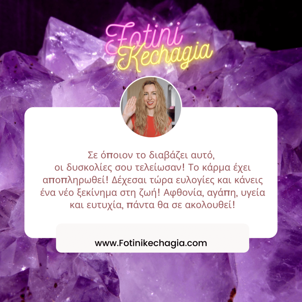 Σε όποιον το διαβάζει αυτό, οι δυσκολίες σου τελείωσαν! Το κάρμα έχει αποπληρωθεί! Δέχεσαι τώρα ευλογίες και κάνεις ένα νέο ξεκίνημα στη ζωή! Αφθονία, αγάπη, υγεία και ευτυχία, πάντα θα σε ακολουθεί! 🙏