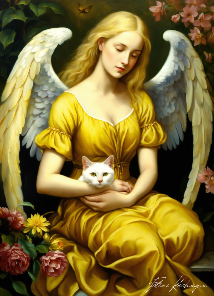 Ο Άγγελος Μαρία, γεννημένη Ζυγός, λατρεύει να φέρνει αρμονία και ισορροπία στις ζωές των γύρω της. Το αγαπημένο της χρώμα ήταν ένα απαλό και χαρούμενο κίτρινο, που θύμιζε τα ηλιοτρόπια που κοσμούσαν τα περίχωρα της πόλης. Οι γάτες, που έλκονταν από την απαλή της αύρα, μαζεύονταν συχνά τριγύρω, γουργουρίζοντας ικανοποιημένες καθώς τους έδινε στοργή.