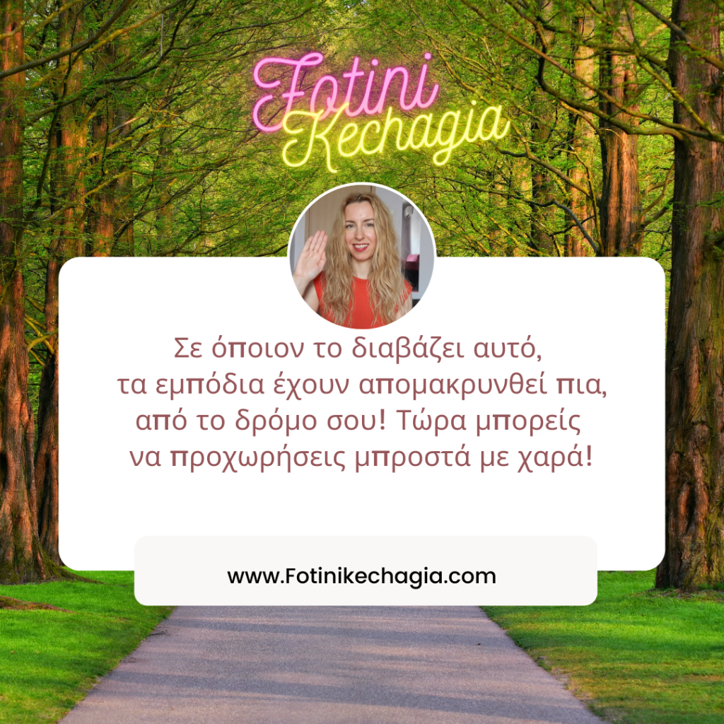 Σε όποιον το διαβάζει αυτό, τα εμπόδια έχουν απομακρυνθεί πια, από το δρόμο σου! Τώρα μπορείς να προχωρήσεις μπροστά με χαρά! 🙏